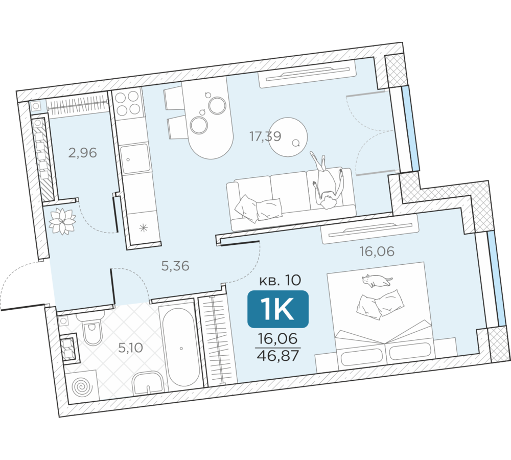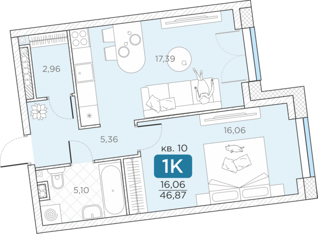 Общая площадь46.87 м2