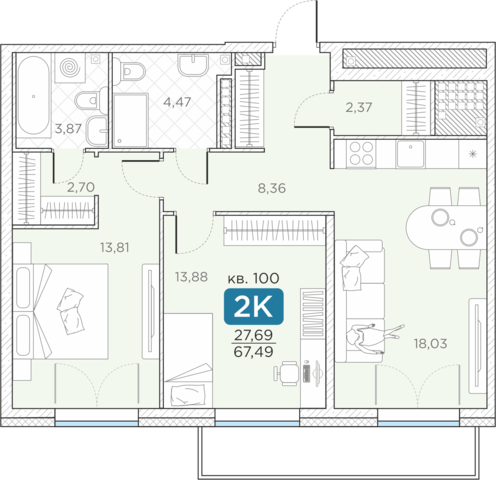 Общая площадь67.49 м2
