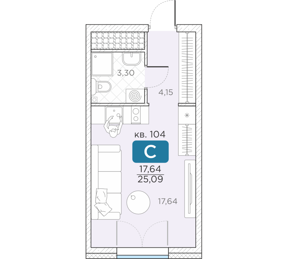 Общая площадь25.09 м2