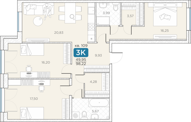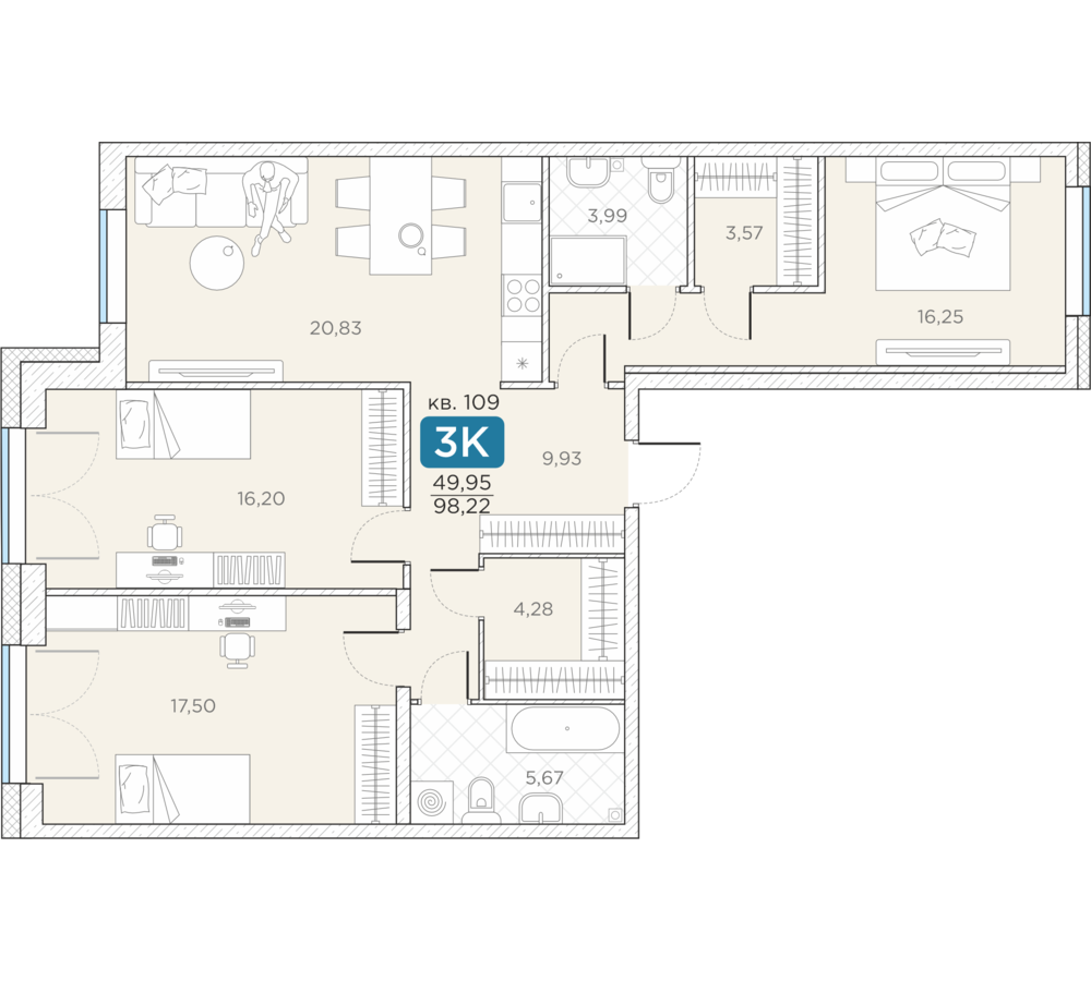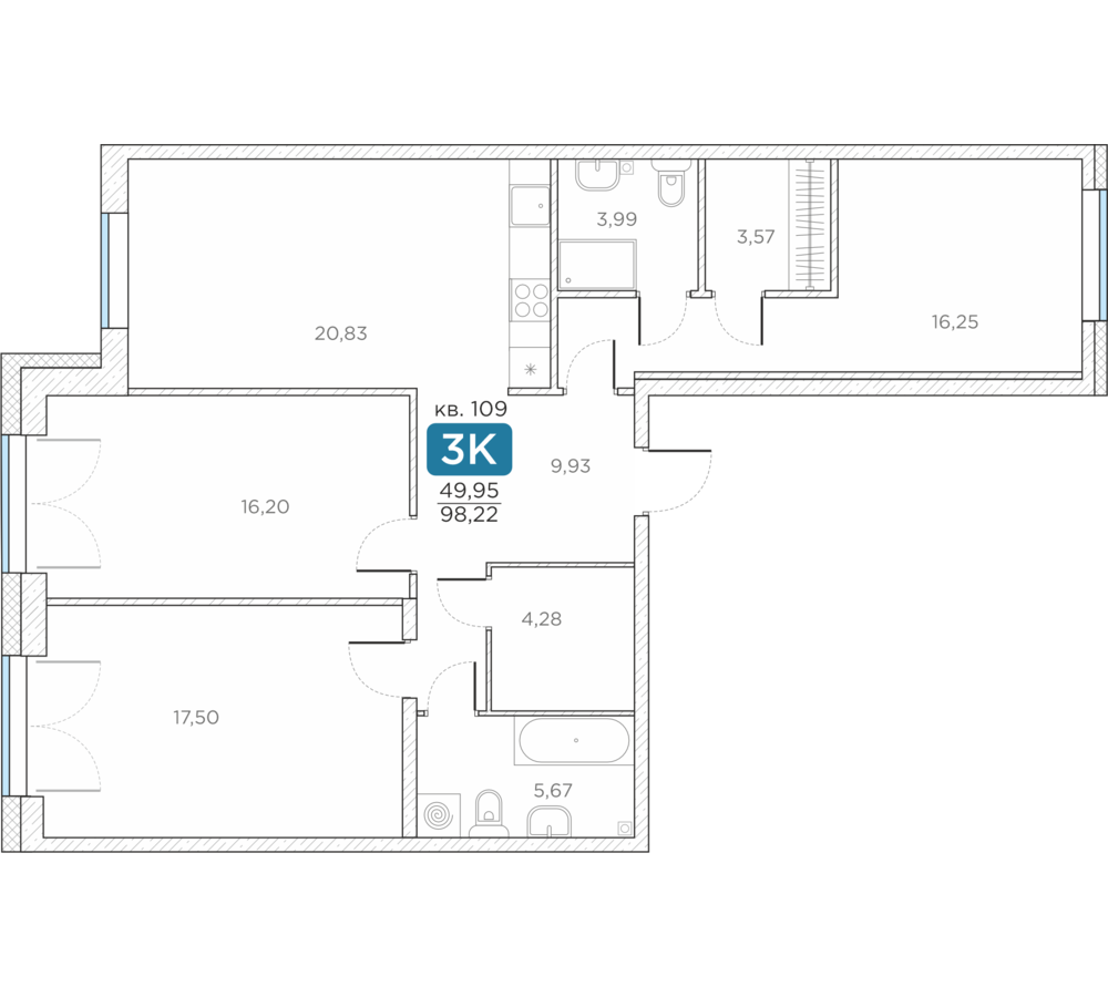 Общая площадь98.22 м2