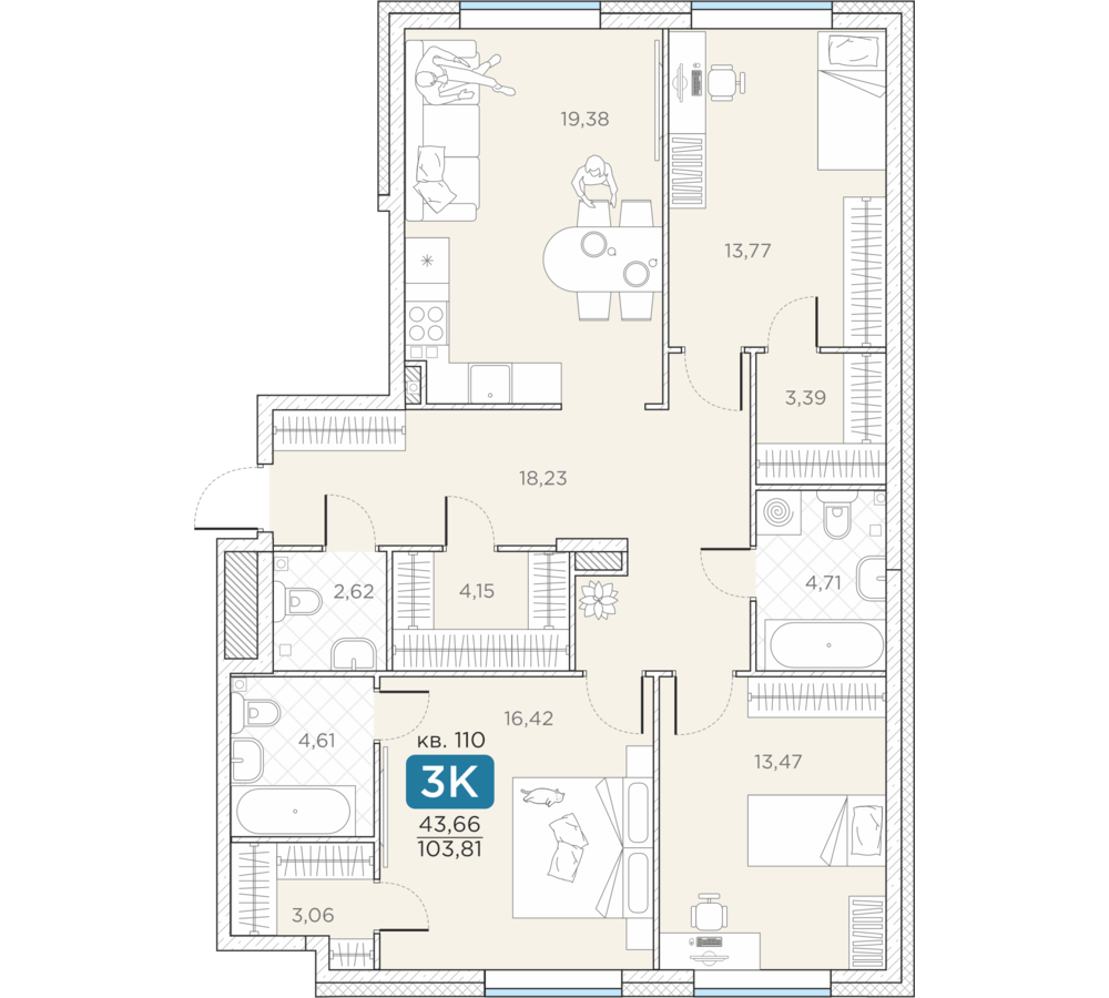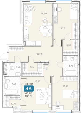Общая площадь103.81 м2