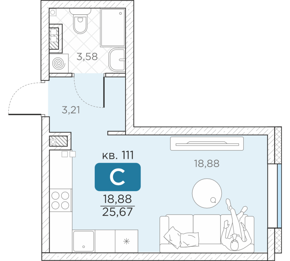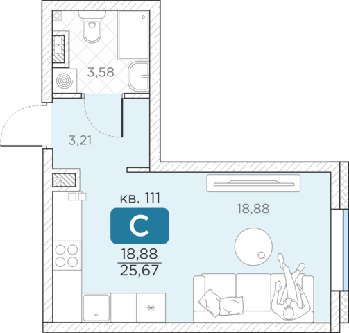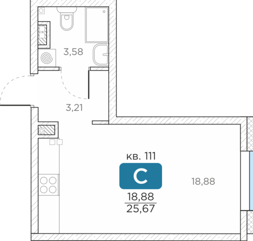 Общая площадь25.67 м2