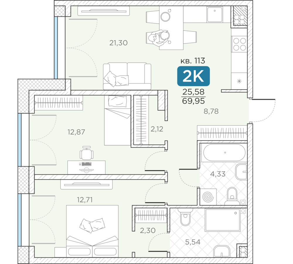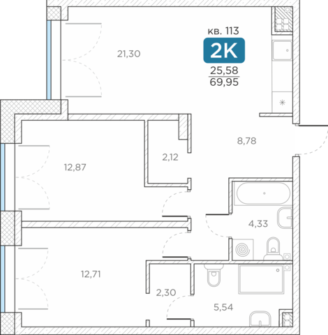 Общая площадь69.95 м2