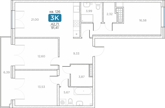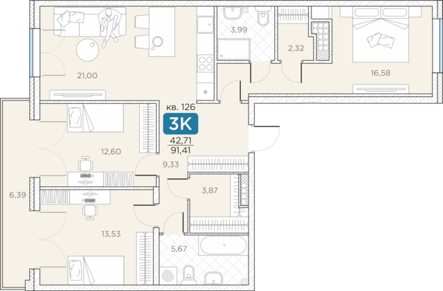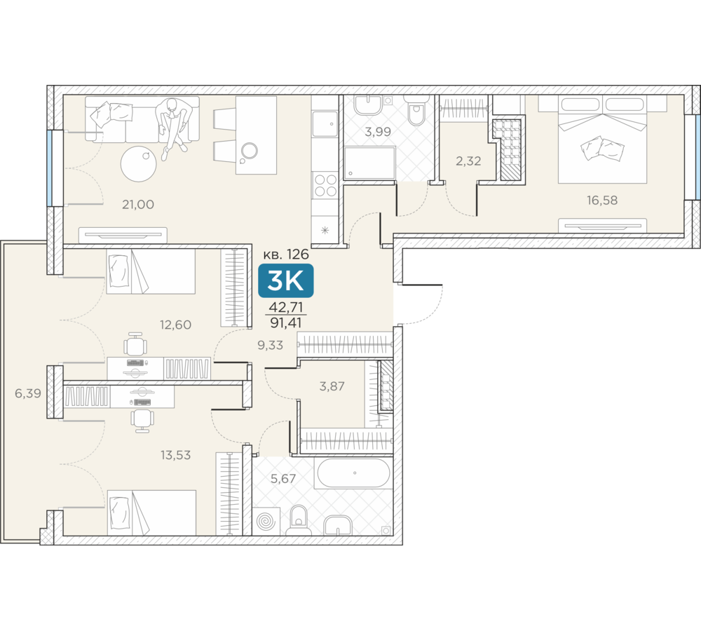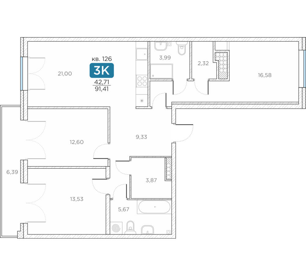Общая площадь91.41 м2