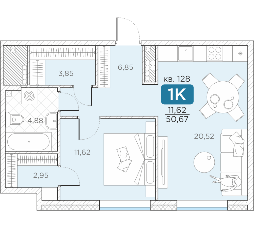 Общая площадь50.67 м2
