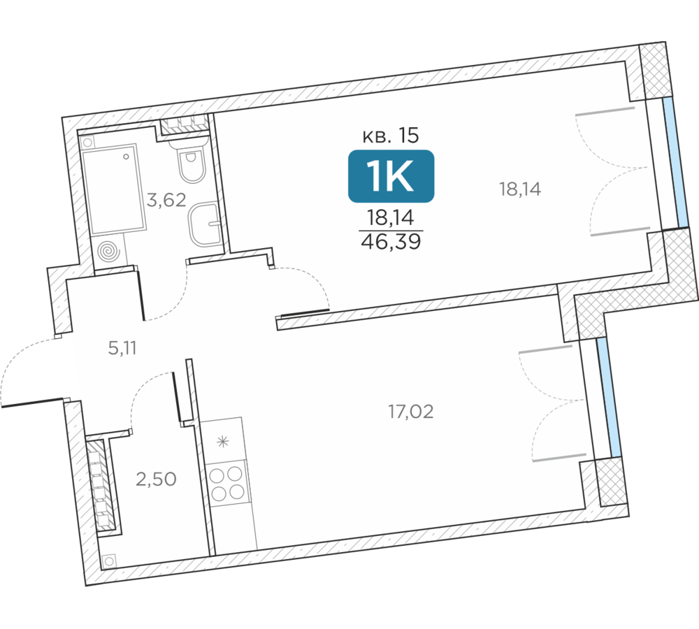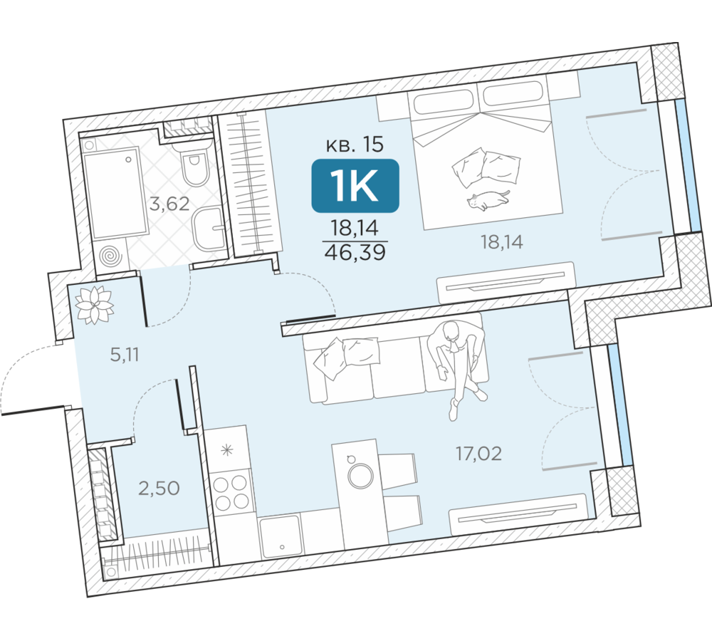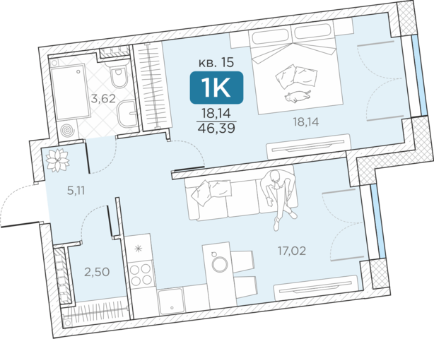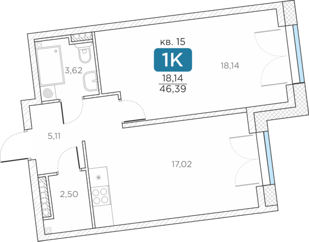 Общая площадь46.39 м2