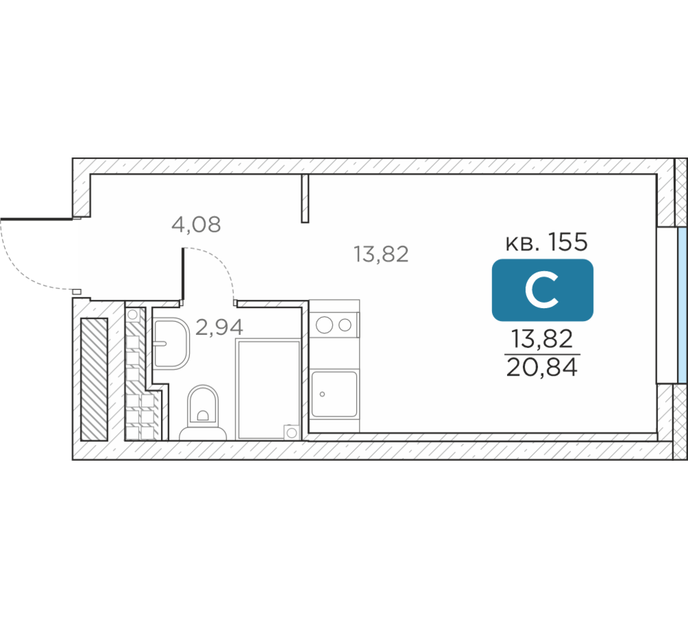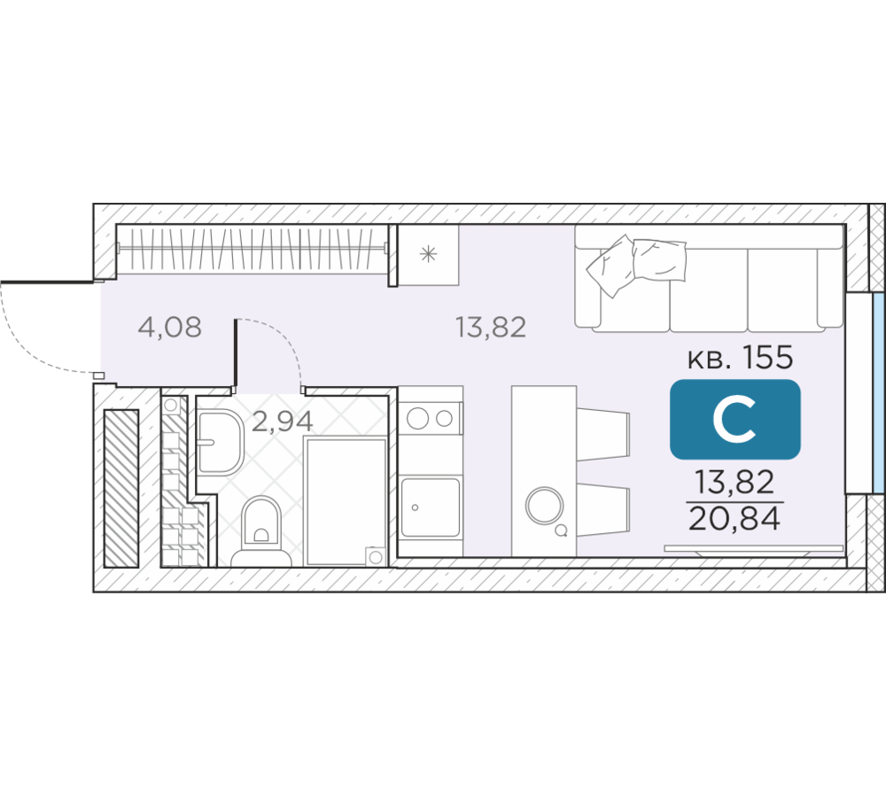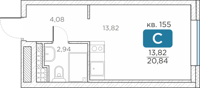 Общая площадь20.84 м2
