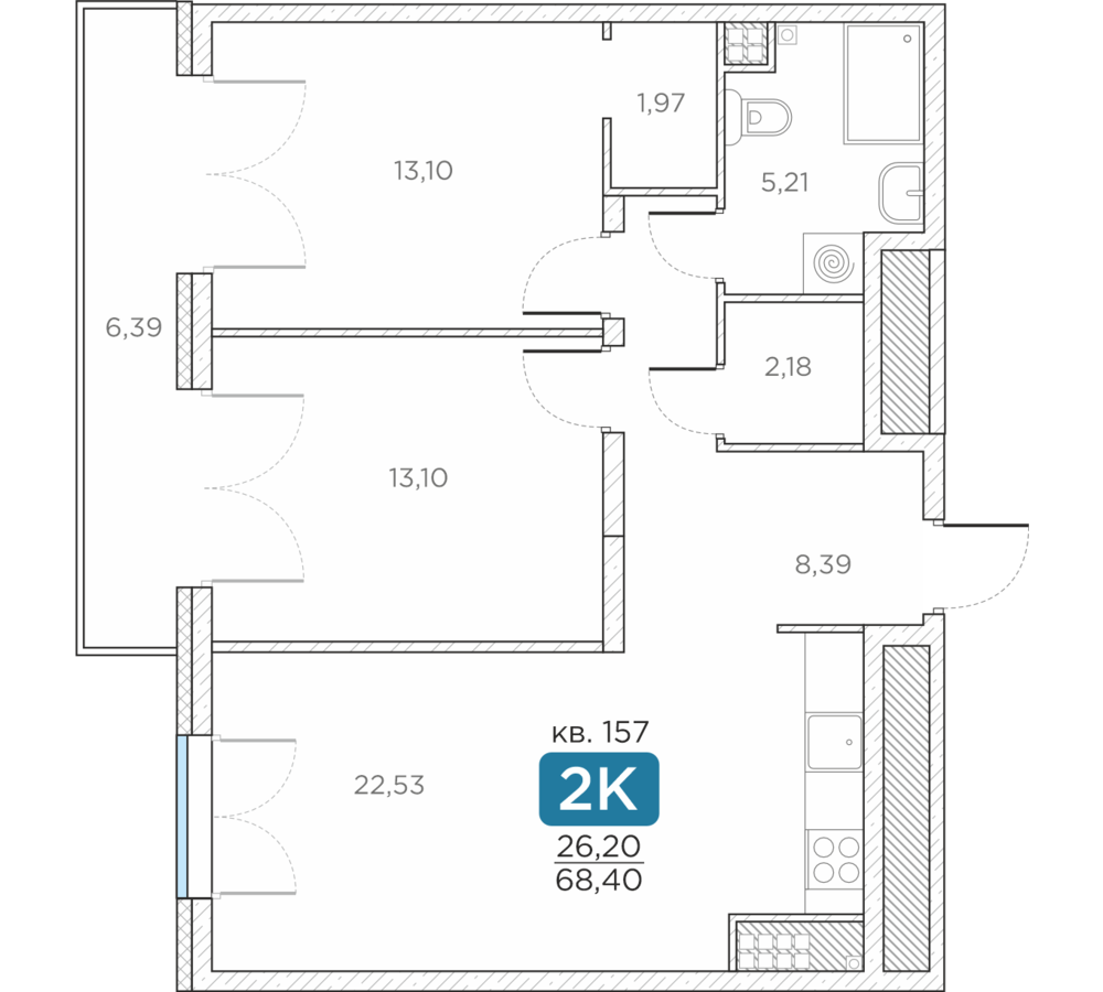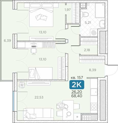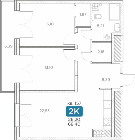 Общая площадь68.4 м2