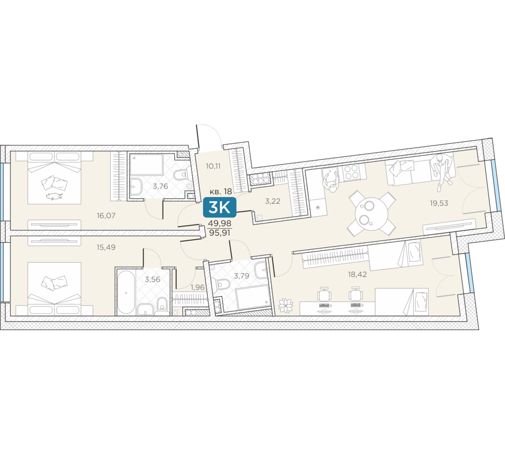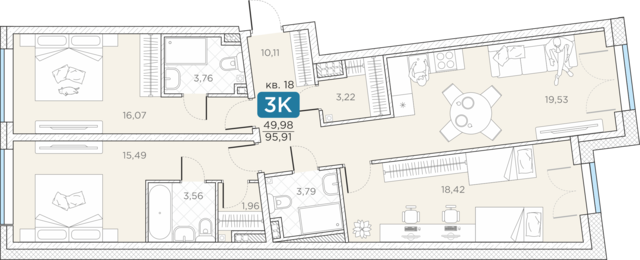 3-комнатная квартира