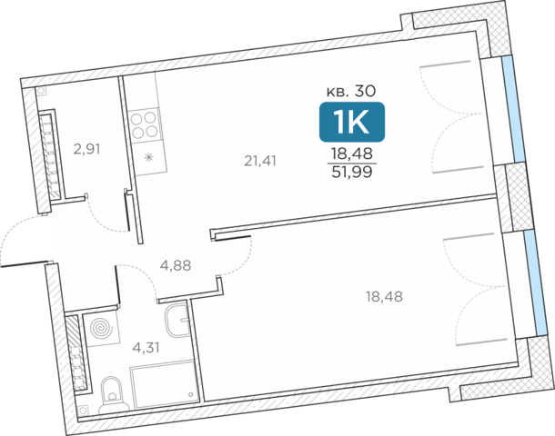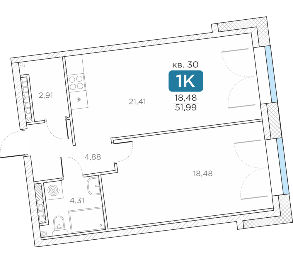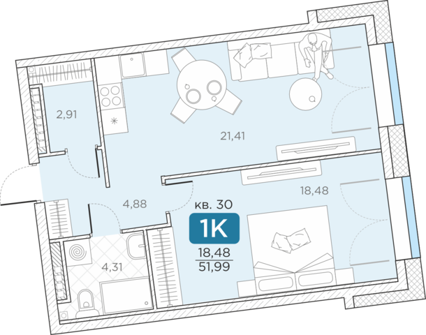 Общая площадь51.99 м2