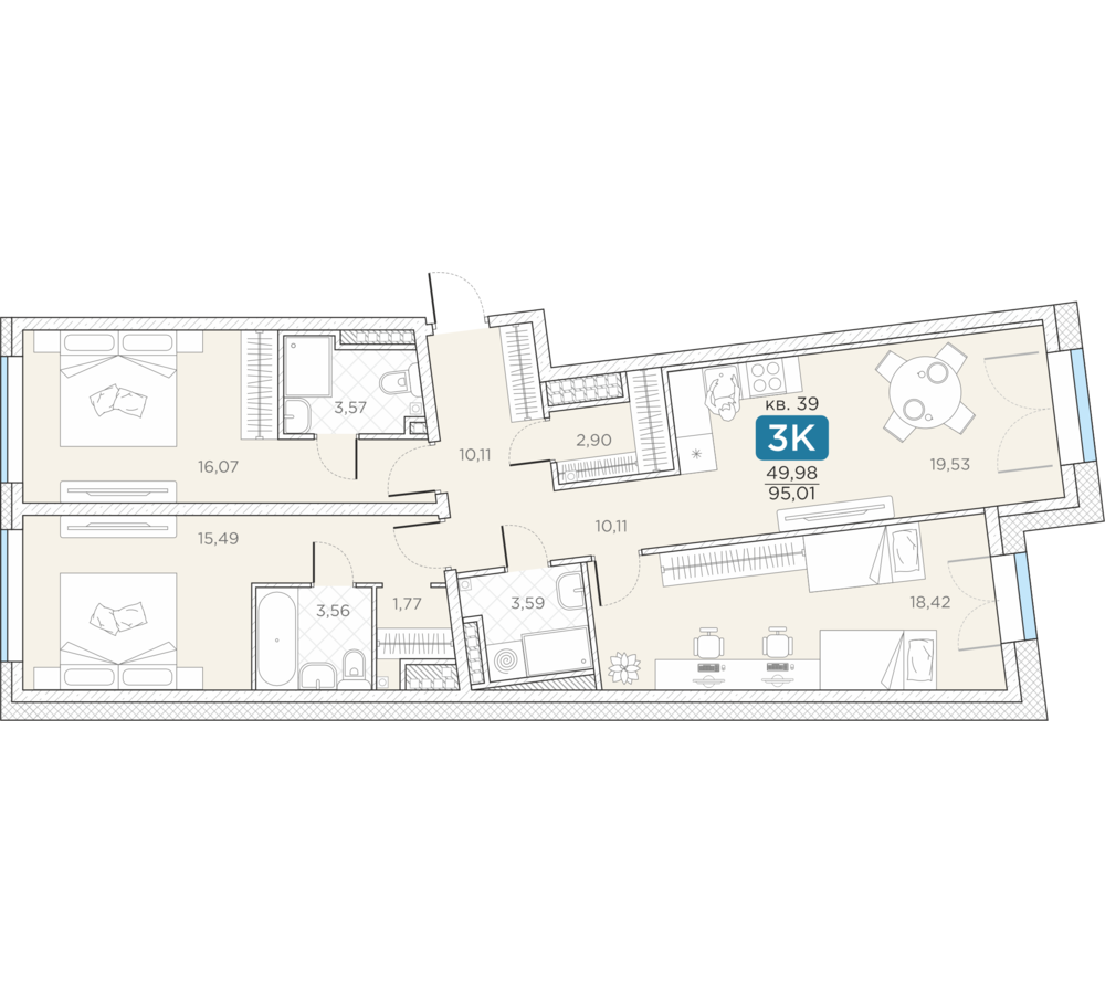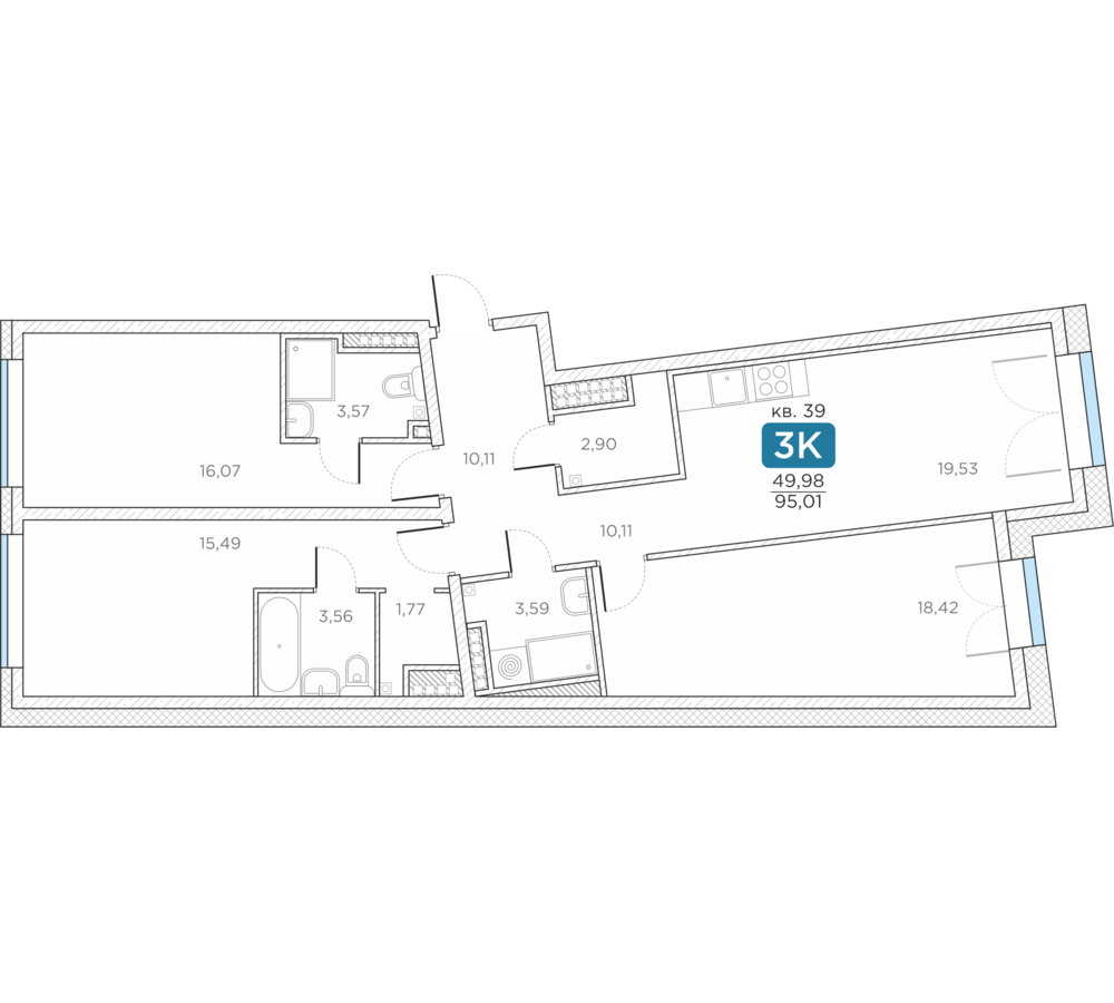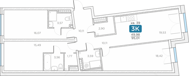 Общая площадь95.01 м2