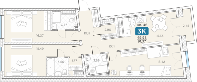 Общая площадь91.37 м2