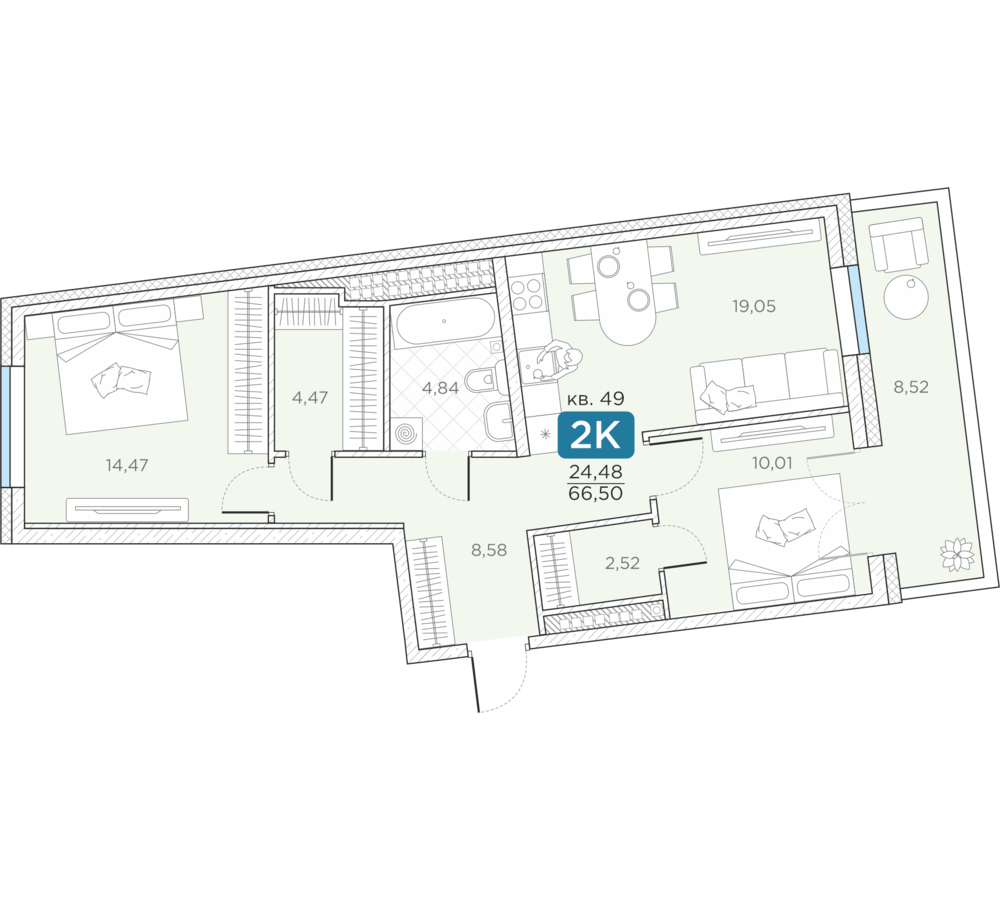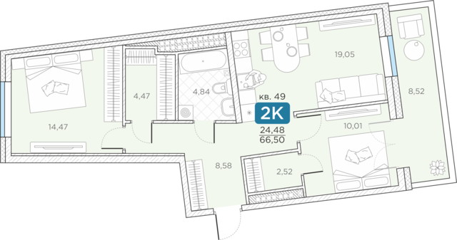 Общая площадь66.5 м2