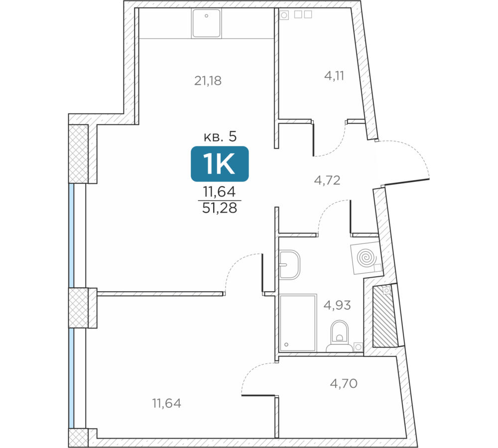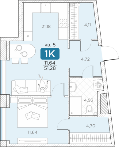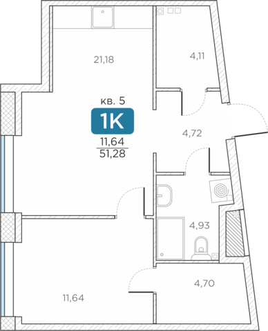 Общая площадь51.28 м2