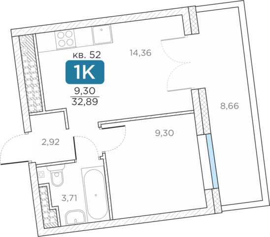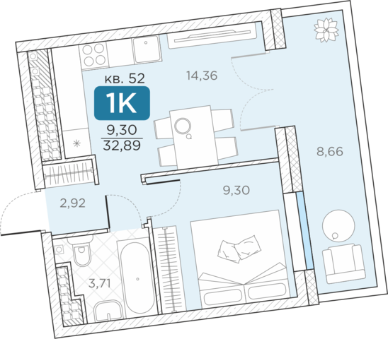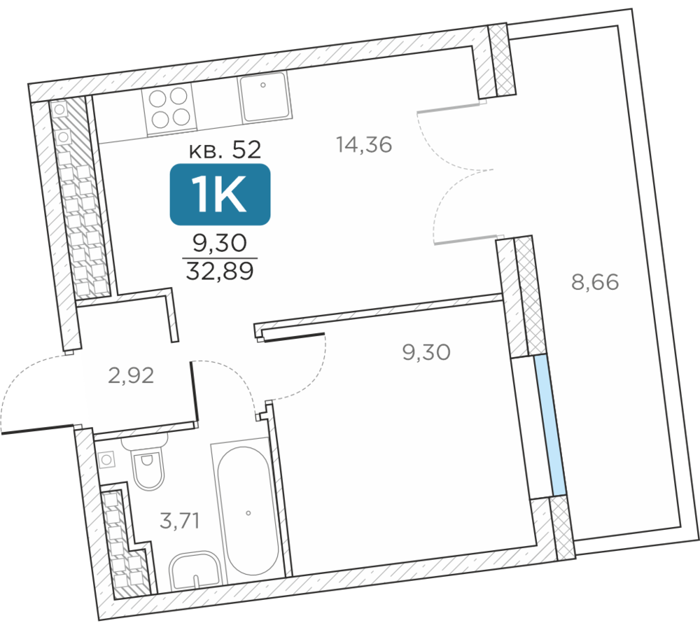 Общая площадь32.89 м2
