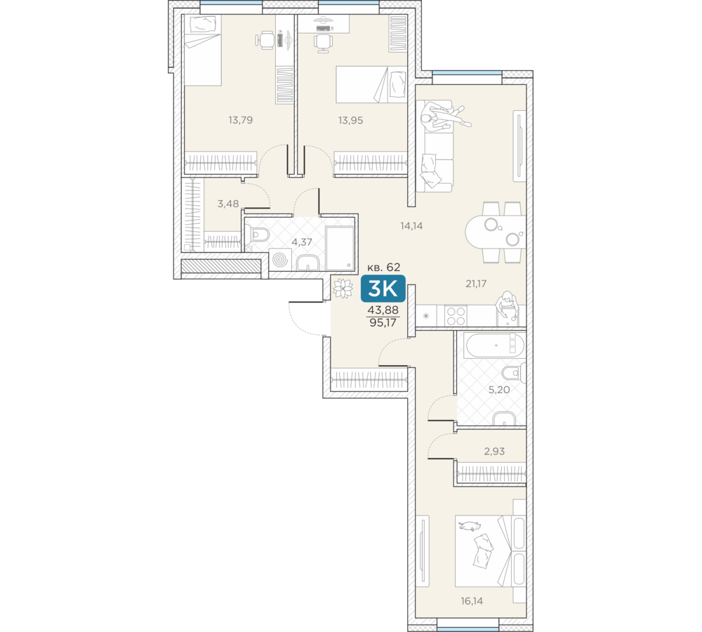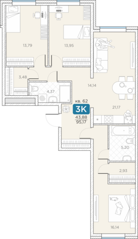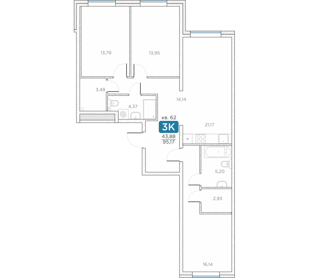 Общая площадь95.17 м2