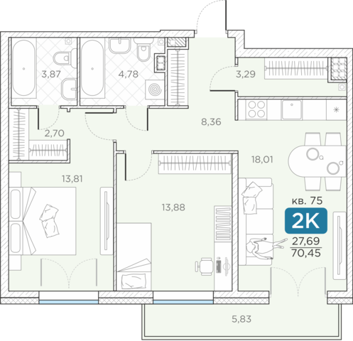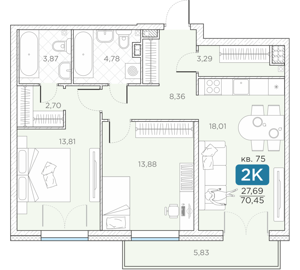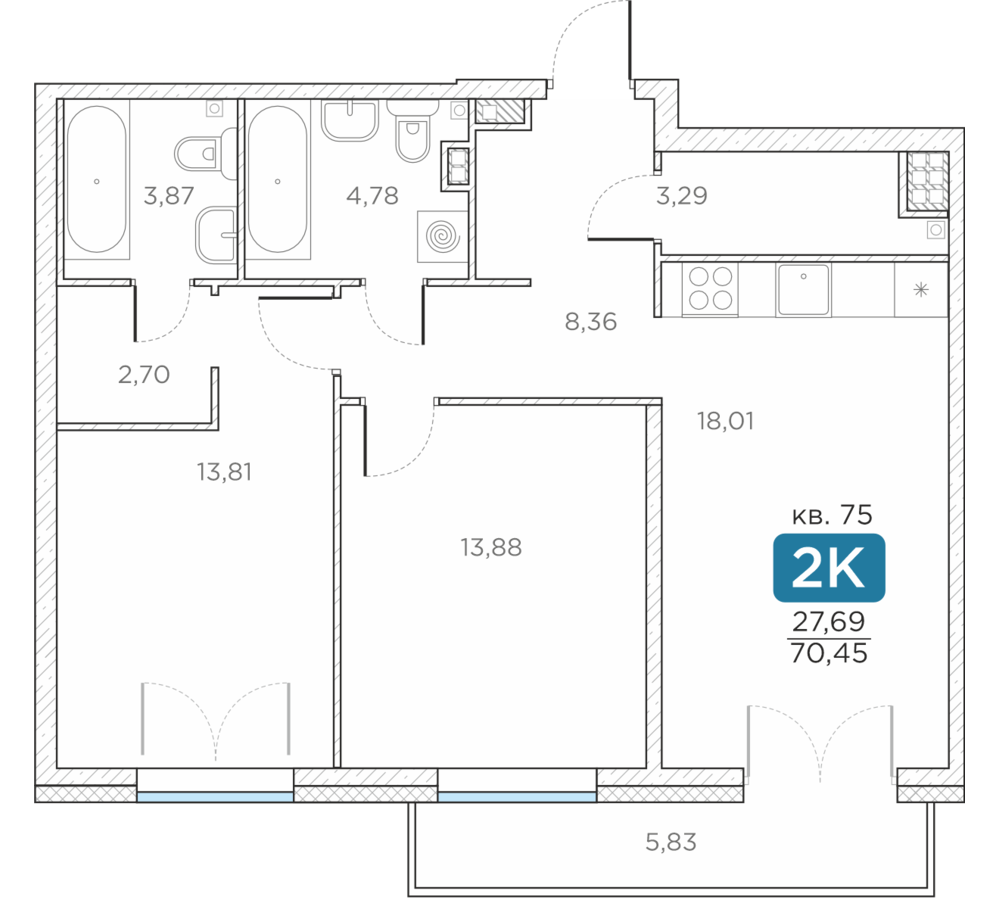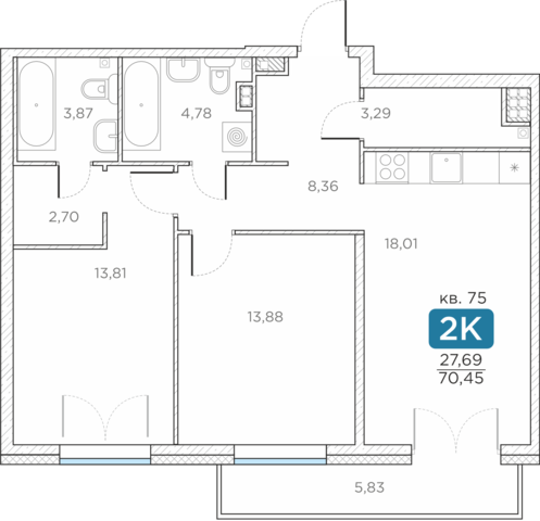 Общая площадь70.45 м2
