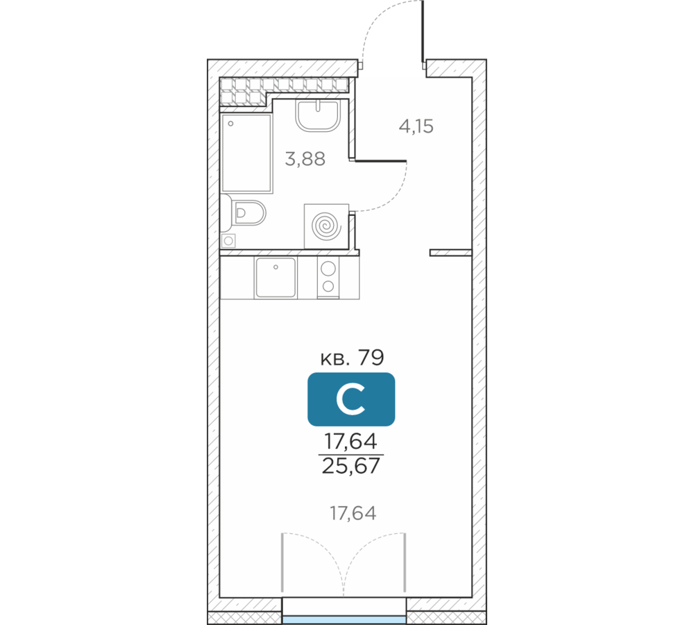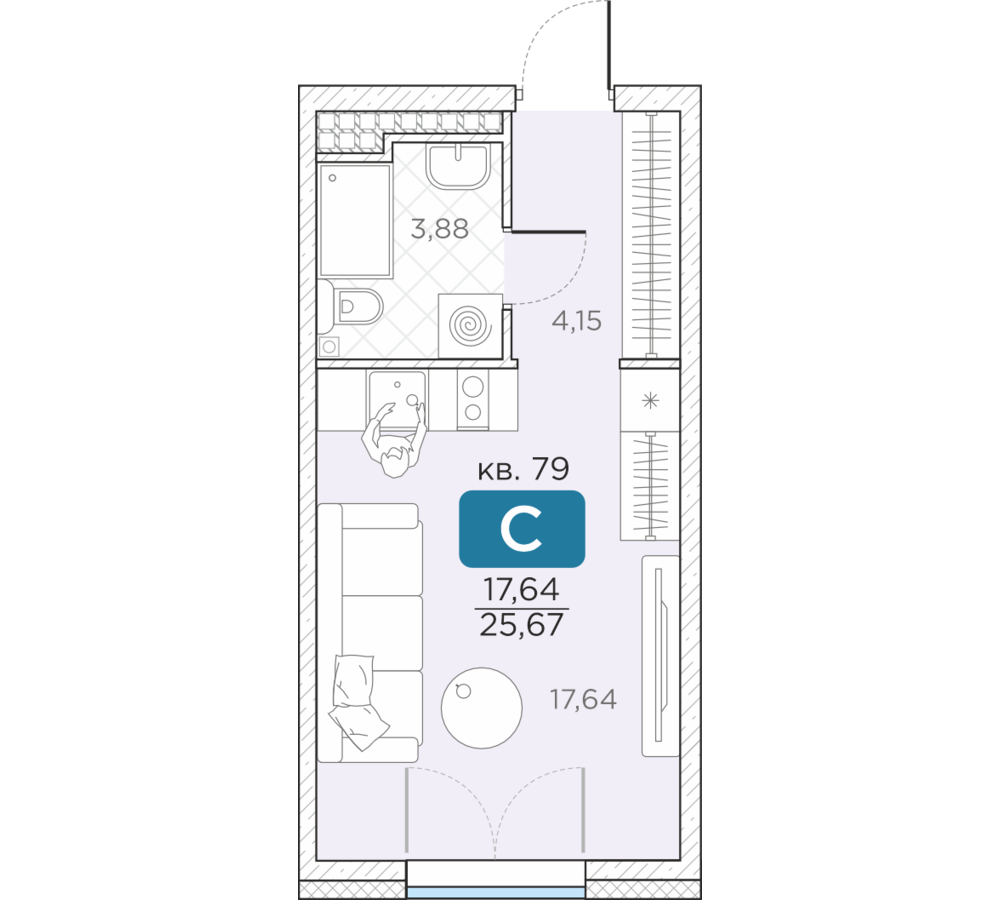 Общая площадь25.67 м2