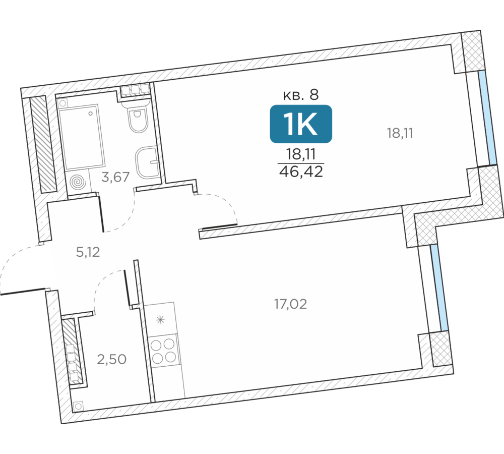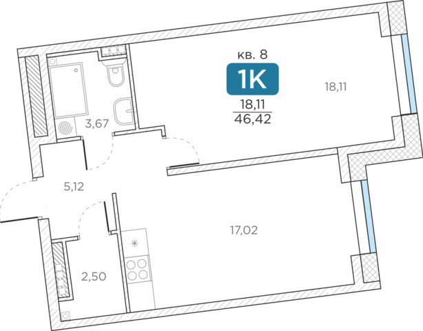 Общая площадь46.42 м2