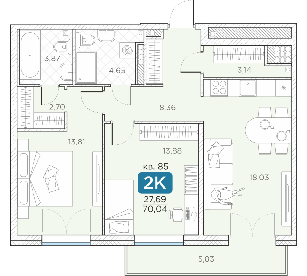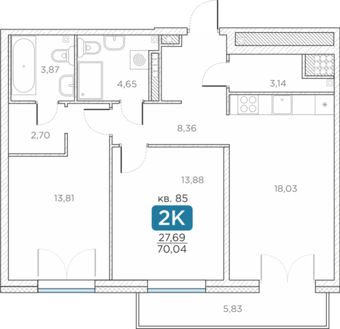 Общая площадь70.04 м2
