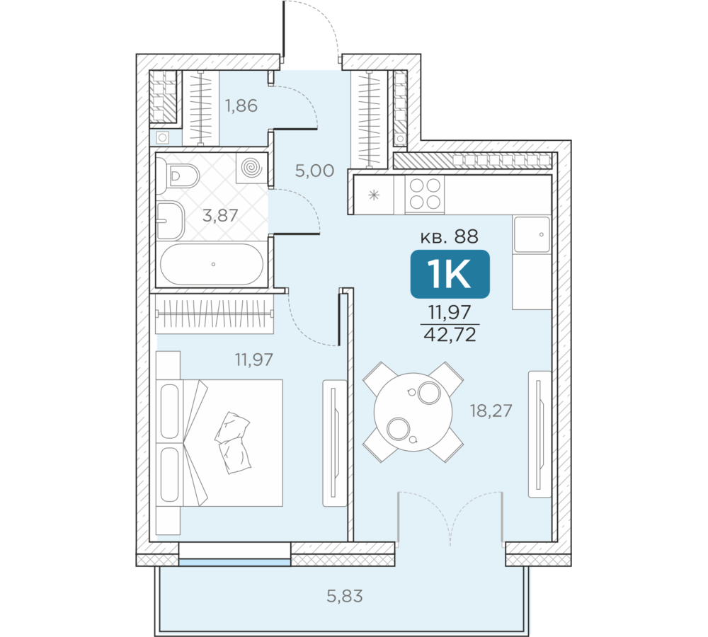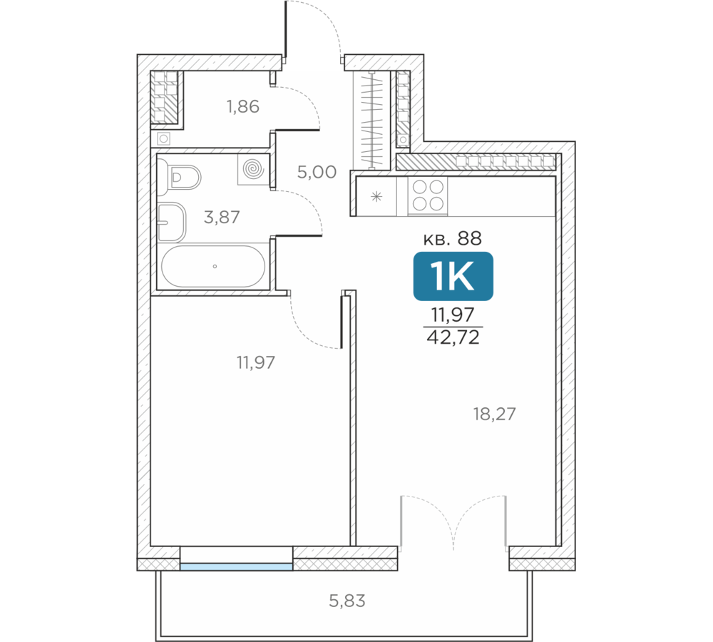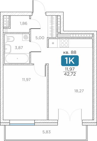 Общая площадь42.72 м2