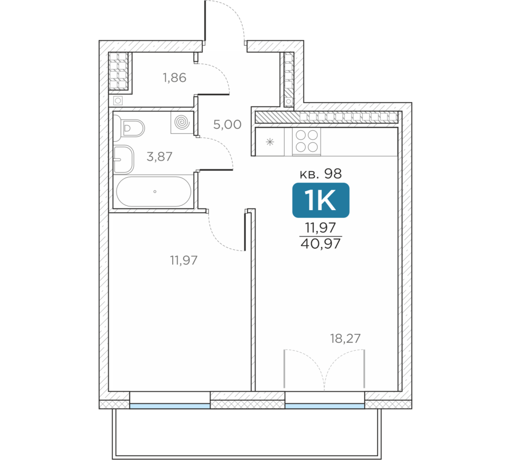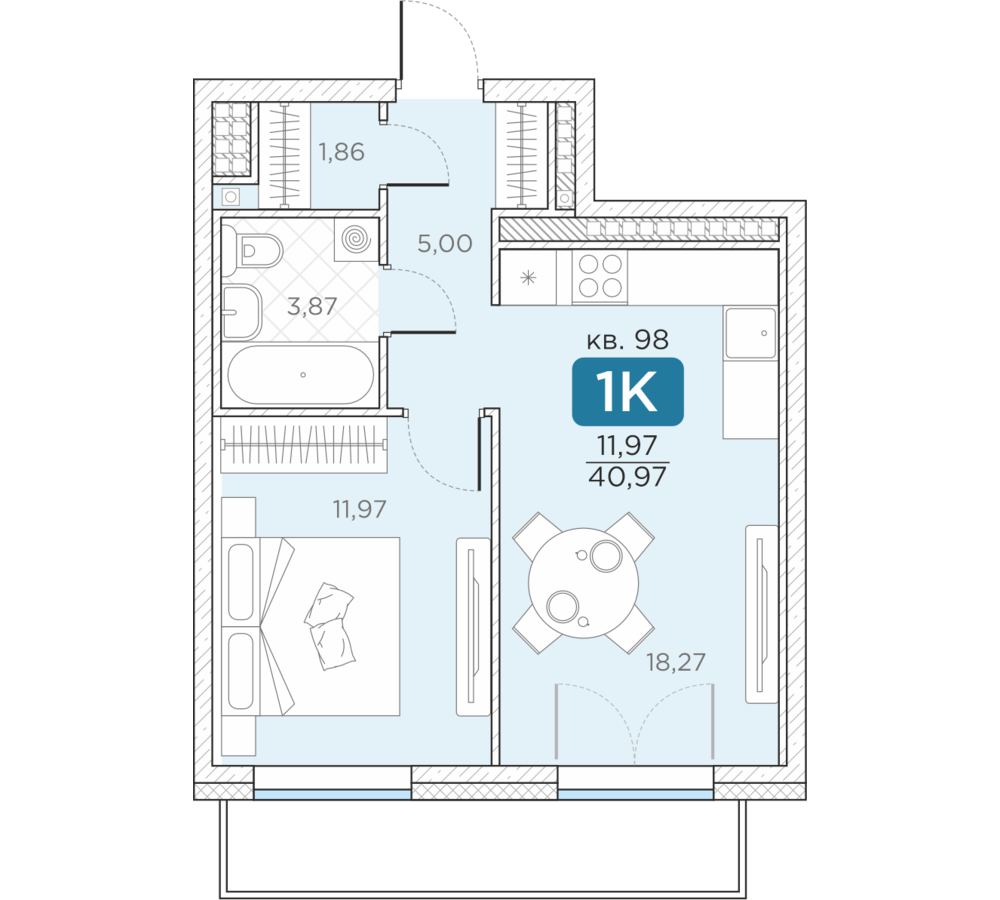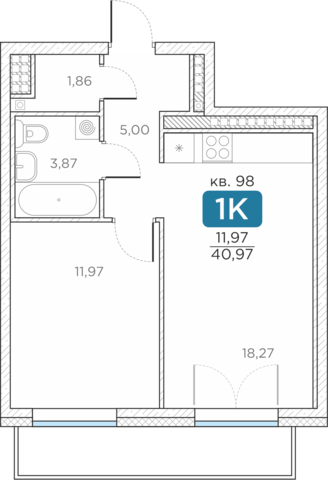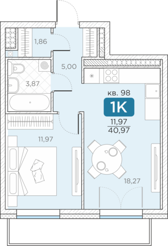 Общая площадь40.97 м2
